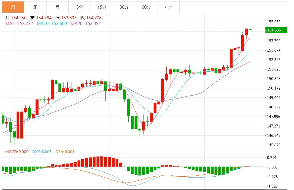 美元/日元周二延续涨势,在154.50上方盘整,触及1990年6月以来的最高点。随着买家在方向盘上,通道阻力位155.80的潜在移动可能即将到来;然而,鉴于市场状况超买以及日本政府干预外汇的可能性越来越大,有必要保持谨慎。
