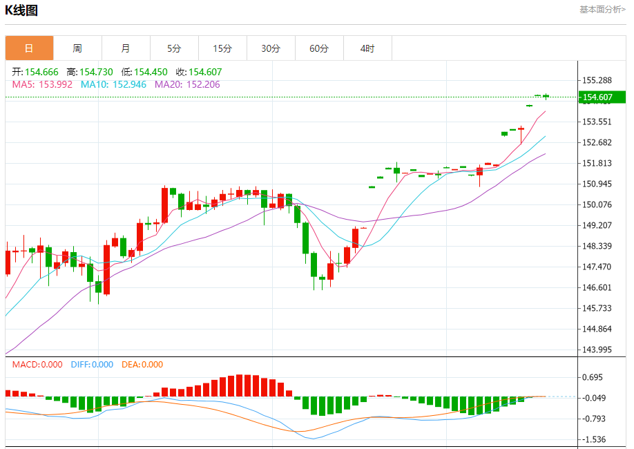 预期交易范围:在153.80支撑和155.50阻力之间。