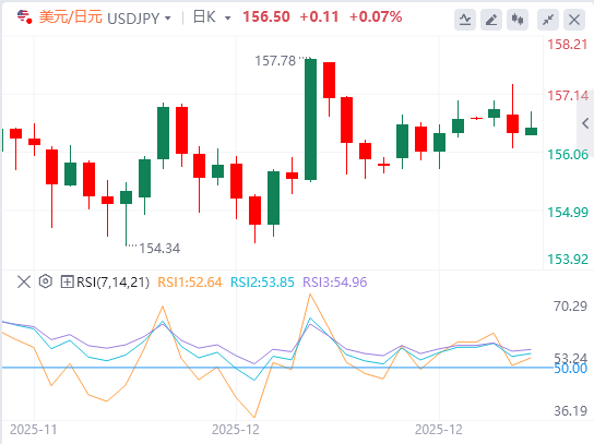 1月6日,日元在周二亚洲交易时段对美汇走低,阻碍了前一天从近两周低点的良好反弹。尽管日本央行(BoJ)持鹰派态度,投资者仍对下一次加息的可能时机仍持不确定态度。这一因素,加上财政担忧和普遍积极的风险基调,削弱了避险日元,并帮助美元兑日元维持在156.00中段附近。然而,多重因素促使日元空头保持谨慎,并在仓位承受更深的跌幅前谨慎。