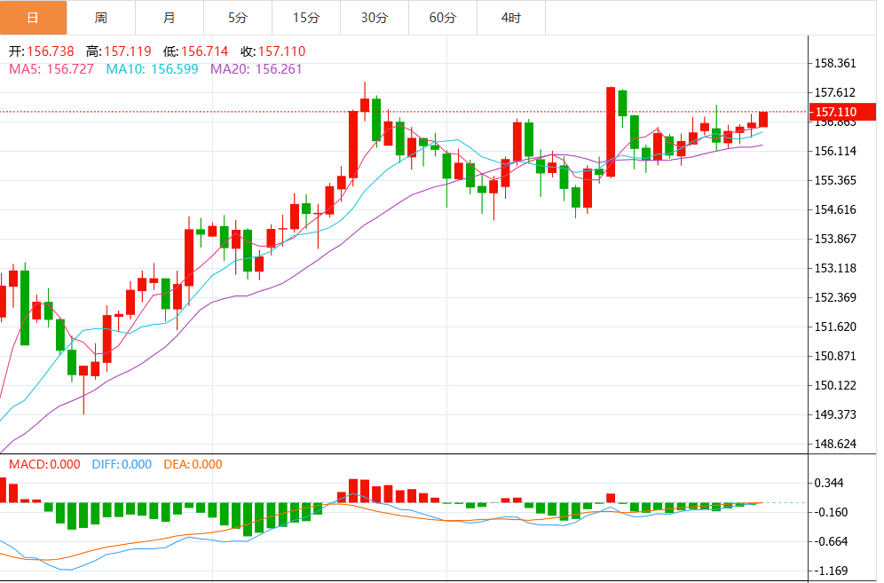 周五亚盘,美元/日元走高,徘徊于157.11附近,美元/日元因美国数据强劲而延续涨势,提振美元和国债收益率。