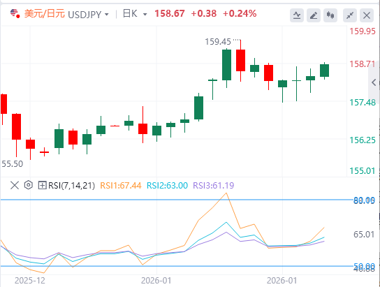 1月22日,日元跌至一周低点,受多种负面因素综合压力。随着美国总统唐纳德·特朗普在格陵兰问题上的转向,全球风险情绪大幅提升,削弱了对传统避险资产(包括日元)的需求。此外,近期日本债券市场因高市早苗首相扩张性财政政策担忧而出现的混乱抛售,也被认为对日元造成压力。