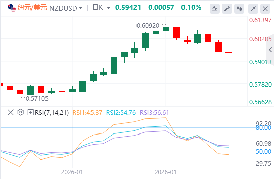 2月6日,周五亚市早盘,纽元/美元吸引部分卖商至约0.5940,受美元走强压力。新西兰失业率上升拖累新西兰货币,将货币对拖至近两周来的最低水平。交易者将关注密歇根消费者信心指数报告的初步读数,该报告将于周五晚些时候发布。