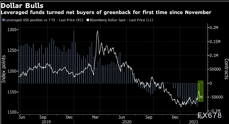 最新数据显示,对冲基金放弃了做空美元。随着美国国债收益率飙升至疫情前的水平,他们自去年11月以来首次看涨美元。分析师认为,土耳其央行行长意外遭到撤换导致里拉暴跌,也提振了对避险资产的需求。