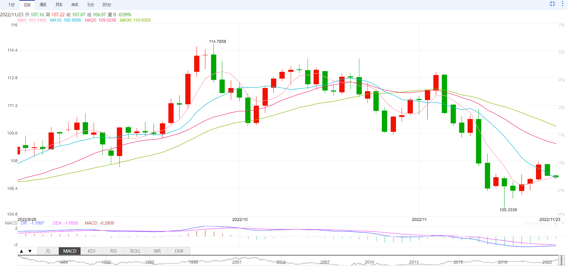 在周四联邦公开市场委员会会议纪要公布之前,美元全面下跌。衡量美元兑一篮子货币汇率的美元指数最近一次下跌超过0.5%,接近当日低点107.121。