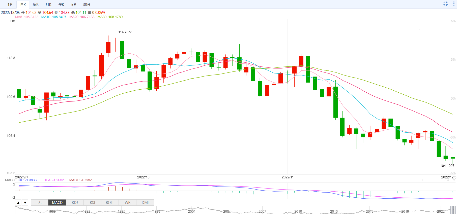 另一方面,如果跌破104.11(12月5日的月最低价),则将向103.41(6月16日的周最低价)和101.29(5月30日的月最低价)敞开大门。