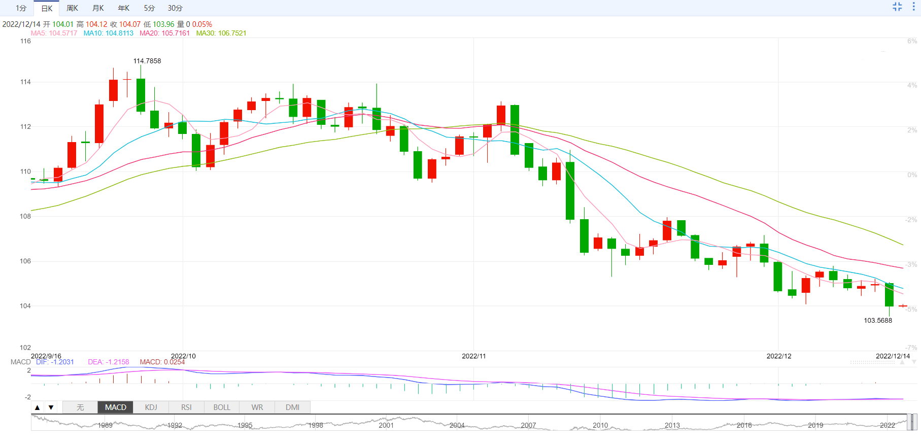 除非提供一个超过三周下行阻力线(截至发稿时约为104.90)的日收盘价,否则美元指数将继续向2022年5月的低点105.30施压。