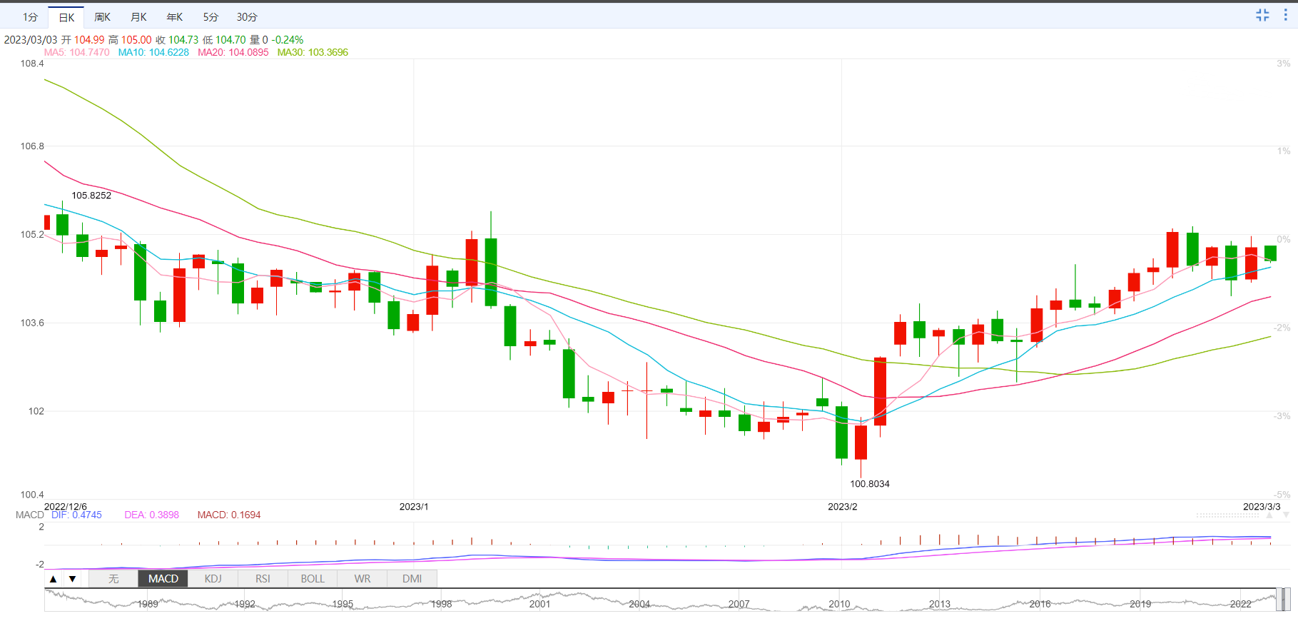 本周到目前为止,该指数保持在105.00区域附近的不稳定表现。