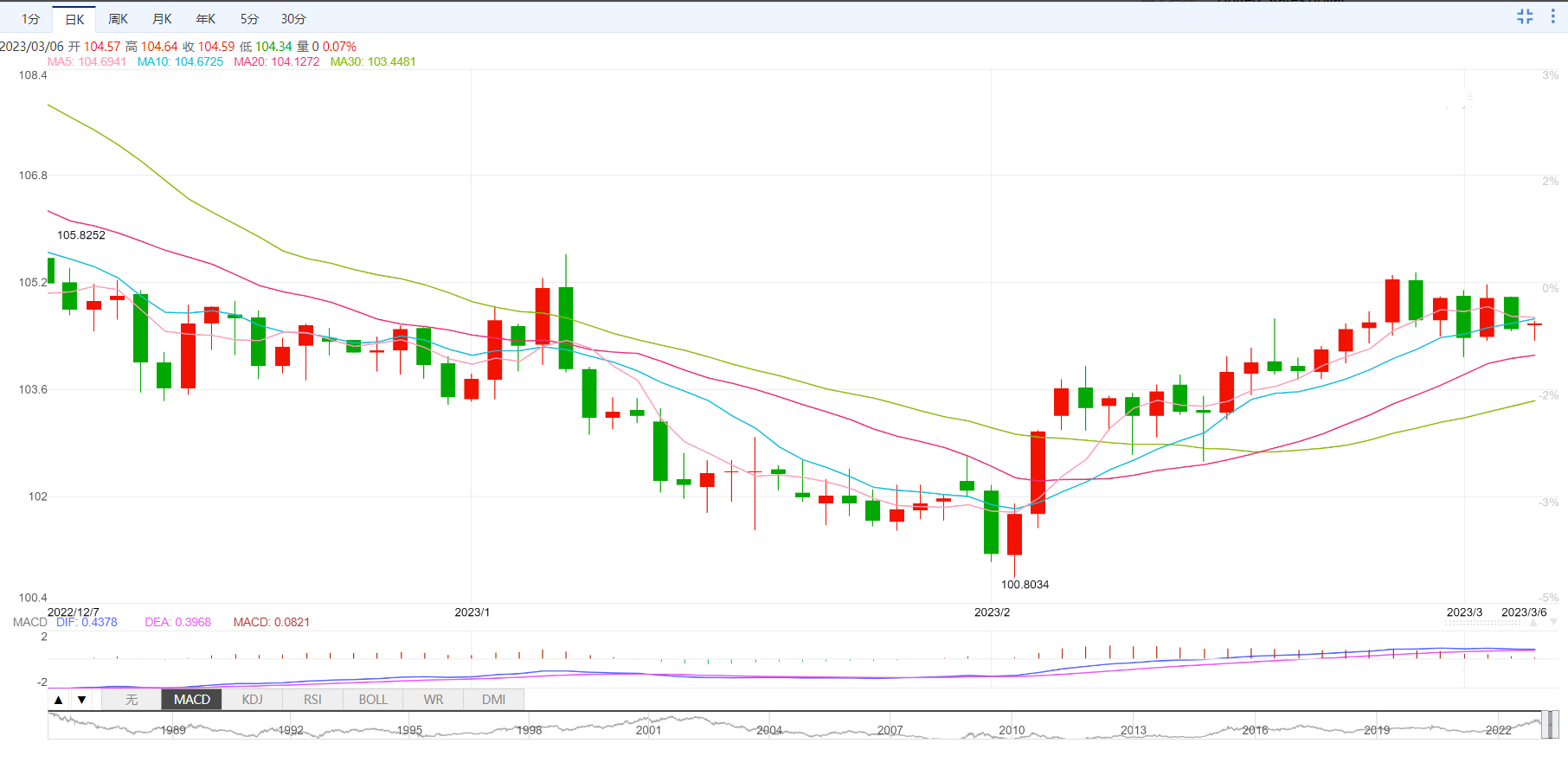 另一方面,下一个阻力位出现在105.35(2月27日的月度最高价),其次是105.63(1月6日的2023年最高价),然后是106.55(200日移动均线)。