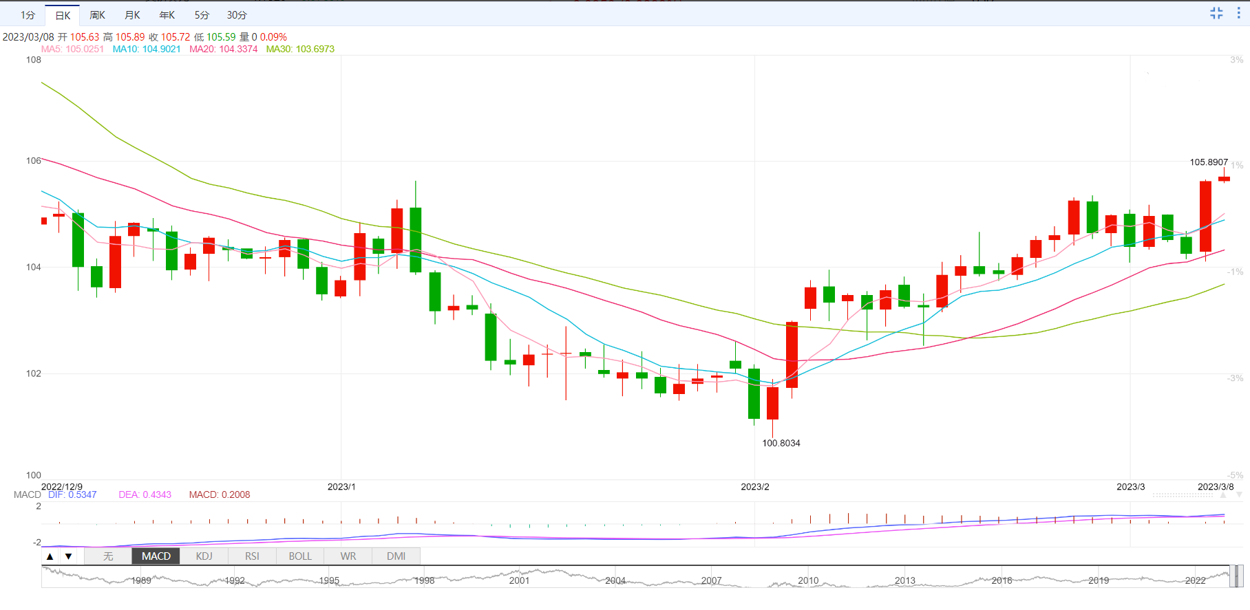 现在,美元指数上涨了0.12%,达到105.74,面临下一个上行障碍105.88(2023年3月8日的高点),其次是106.59(200天移动均线),然后是107.19(2022年11月30日的周高点)。