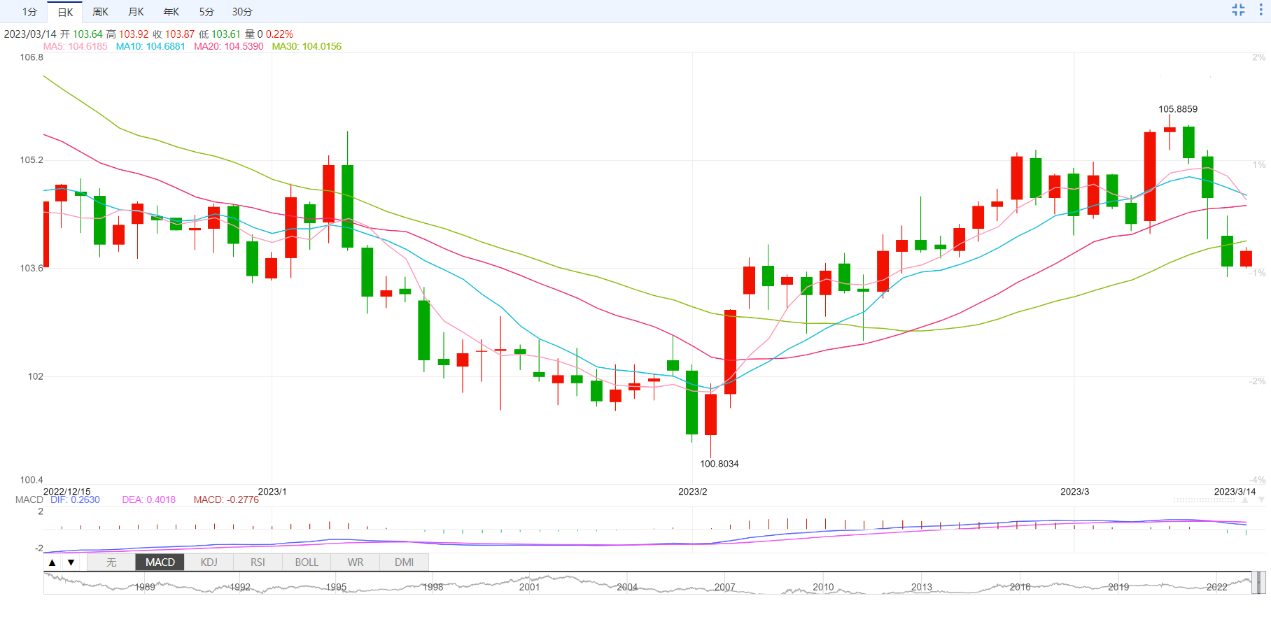 美元指数在经历了自1月中旬以来的最大单日跌幅后,在103.65-70左右波动,因为美元交易员重新评估了前一天在美国银行监管机构为硅谷银行(SVB)和签名银行辩护期间的波动。