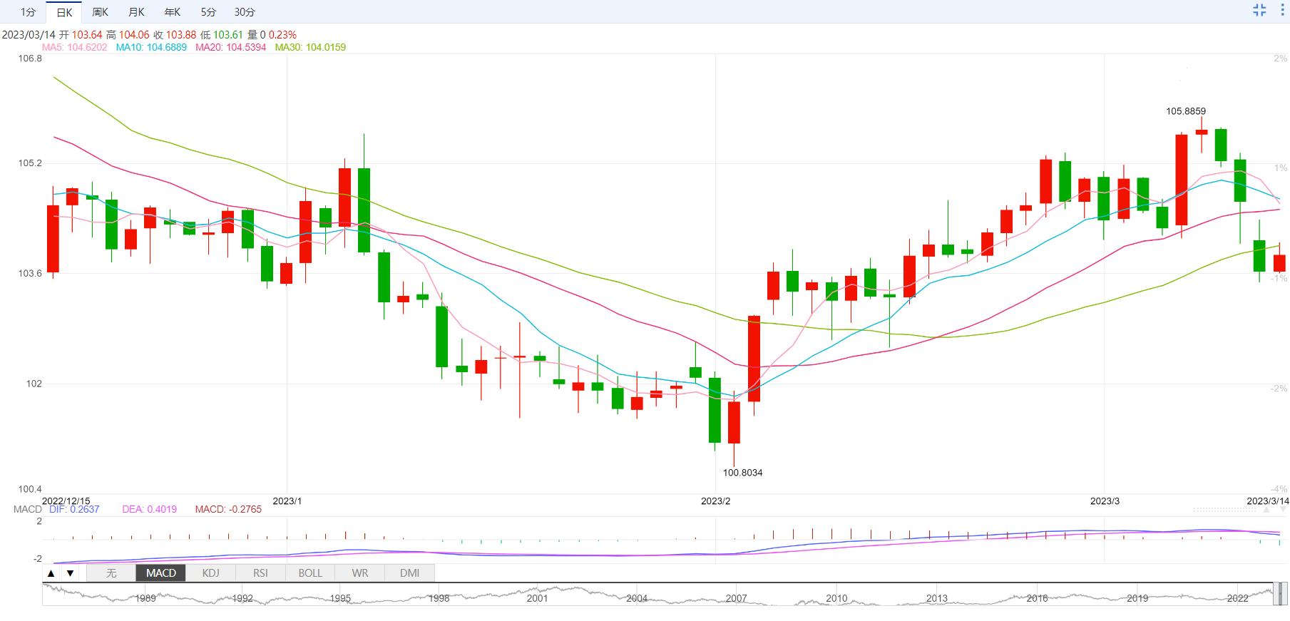 美元指数相关水平
