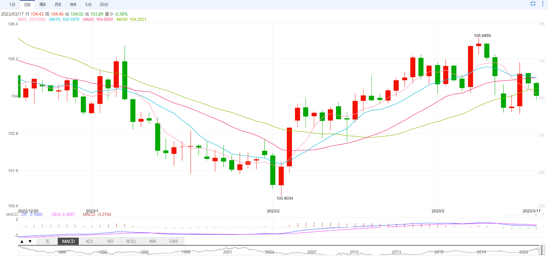 上周五,该指数连续第二个交易日下跌,原因是投资者对风险综合体的偏好持续回升,与此同时,对欧洲和美国银行业的担忧减弱,仍支撑着这种偏好。