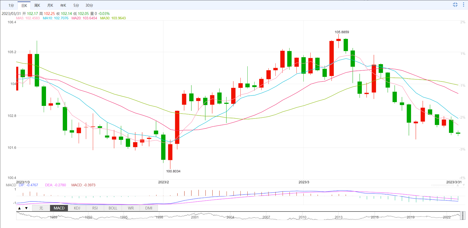 美元指数在一个下降三角形的结构中不断下降,目前在101.80和102.60之间。