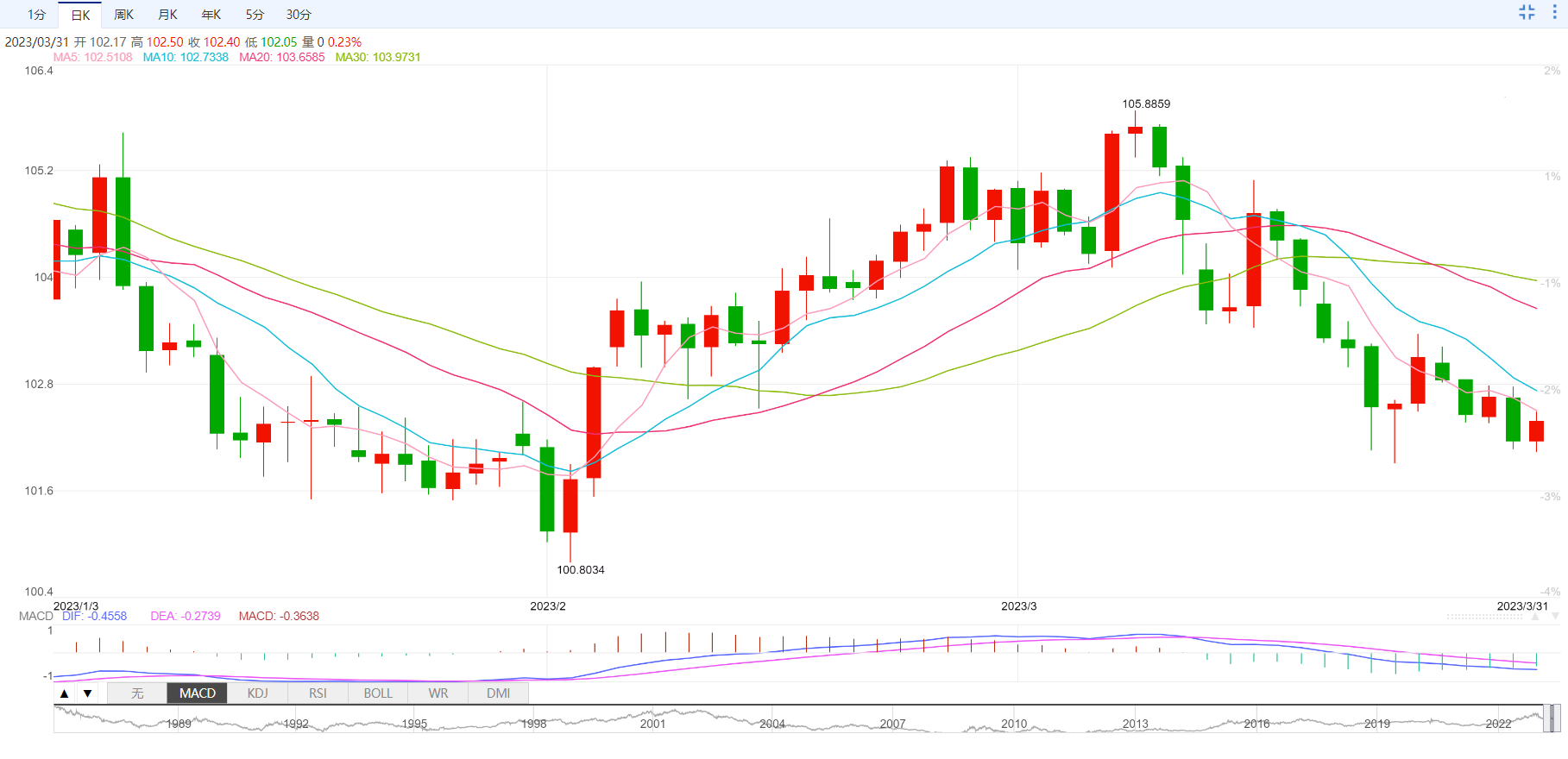 另一方面,突破101.93(3月23日的月度低点)将打开通往100.82(2月2日的2023年低点)的大门,最终是100.00(心理水平)。