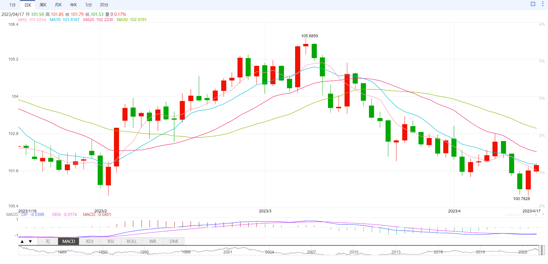 现在,美元指数在101.60处上涨0.03%,下一个阻力位出现在103.05(4月3日的月度高点),其次是103.52(100天移动均线),然后是105.11(3月15日的周高点)。