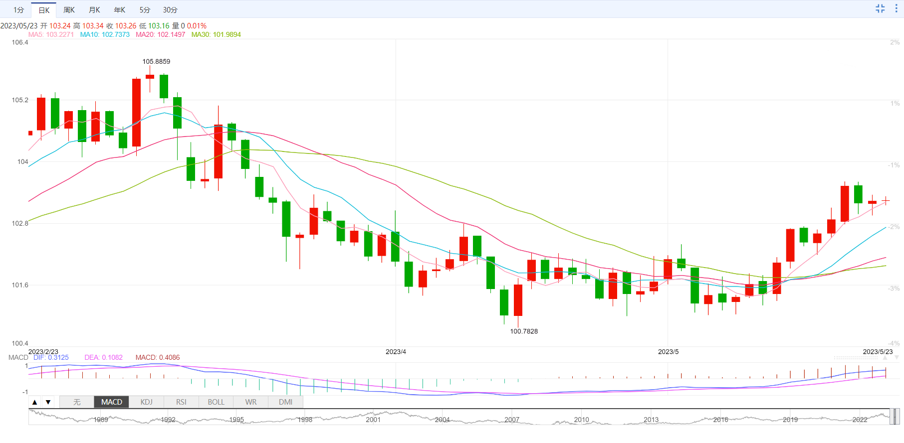 美元指数在周二亚洲市场早盘的即时支撑位103.20上方的小范围内盘整。由于投资者正在等待美国总统乔·拜登和众议院议员凯文·麦卡锡就美国债务上限问题进行面对面谈判的结果,预计该资产将继续处于紧张状态。