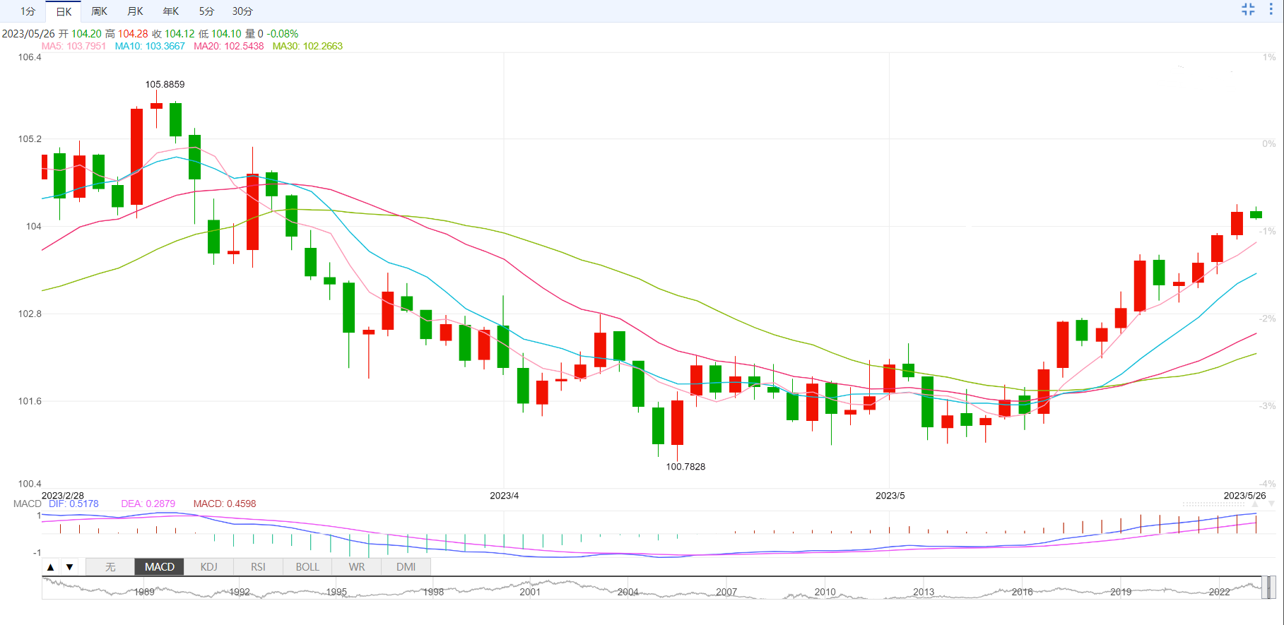 美元指数下行风险仍低于200日移动均线,这可能导致美元跌向100日移动均线103.212。明确的突破将使美元指数跌向5月22日的低点102.964,略低于103.000大关。