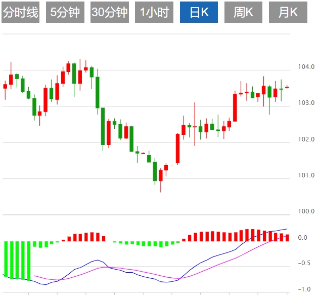 稳健突破且日收盘价高于103.70可能会引发向104.40和105.00的100日移动平均线移动。如果价格跌破50日均线103.00,空头可能会瞄准102.10和101.35。