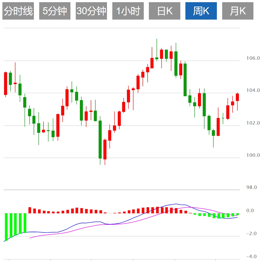 美元指数在周初小幅波动,周三美联储决议使其剧震超过100点。周四,由于市场预期5月降息幅度加大,美元指数受到冲击,一度跌至103关口。然而,周五在强劲非农数据的提振下,美元指数大幅反弹,成功扭转了周线走势,日内涨幅超过近百点,最高触及104.047,为7周来的最高水平,实现连续第5周上涨。