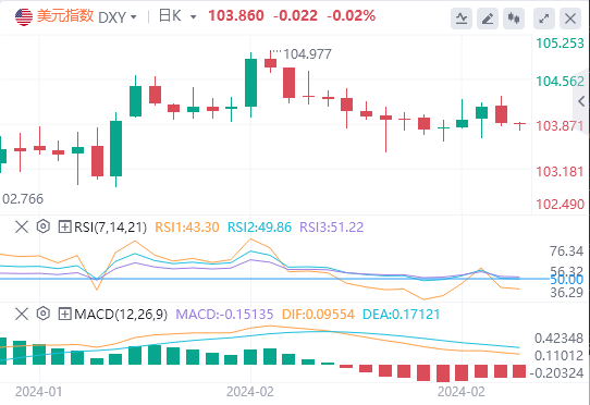 美元指数小幅下跌0.03%,报103.881。这一小幅下跌使该指数略高于关键水平,以枢轴点为标志103.82美元。展望未来,直接阻力位在104.24美元,随后的水平在104.44美元和104.69美元,对上行构成潜在挑战。