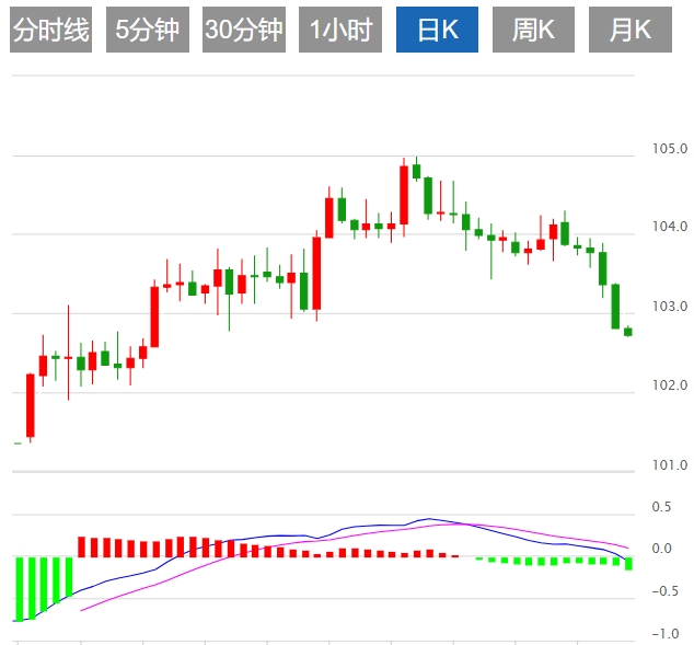 周五亚盘,美元指数继续疲软,美联储主席鲍威尔表示,如果通胀信号配合,降息可能不会太远。截止发稿,美元指数走低,现报102.70。