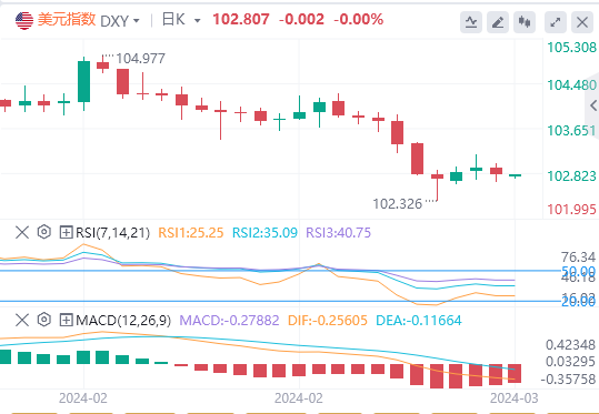 3月14日,周四亚市早盘,美元指数回落至102.76,焦点转向美国生产者价格指数(PPI)和零售销售数据。乌克兰袭击俄罗斯炼油厂,美伊就红海袭击举行秘密会谈,刺激避险黄金回升至2175美元