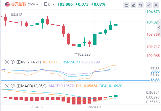 3月20日,周三亚市盘中,美元指数升至103.91,黄金回调至2155美元喘息,但技术分析认为,金价存在牛市楔形突破的潜力,应趁着回调买入等待看涨反转。
