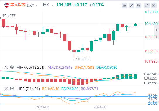 3月28日,周四亚市早盘,美元指数目前小幅上涨至104.3,接近周五的峰值104.50。投资者似乎处于观望状态,因为他们正在等待新的驱动因素将赌注押在美联储(Fed)宽松周期的时机上。