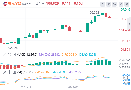 4月18日,周四欧市盘中,美元指数徘徊在105.82附近。