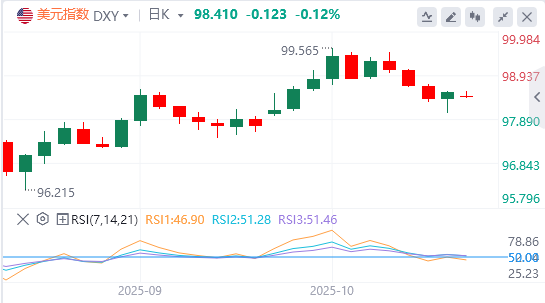 10月20日,周一欧洲早盘,美元指数正在回吐前一交易日的近期涨幅,交投于98.40附近。