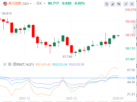 1月8日,美元指数在连续两个交易日上涨后,于周四亚洲交易时段持稳,目前徘徊在98.70附近。市场情绪趋于谨慎,交易员正等待周五公布的关键美国非农就业报告,以获取更清晰的经济前景和货币政策线索。