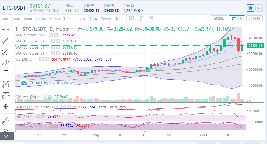比特币昨日行情迎来洗盘,日内跌幅近8700点,走势一路向下逼近31000一线。日内凌晨延续下行,低位进一步下探至30400位置附近反弹,行情迎来反转,多头情绪开始回暖,目前走势重回34000区域。