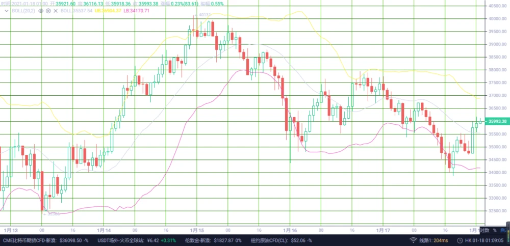 日内比特币上攻乏力,多头情绪开始由强转弱,行情在午后走出破位下行,低点向下跌破重重支撑,触及33855位置。目前走势回踩上涨,局势进入反弹节奏,行情重回36000区域,但是整体走势还是偏弱,后市老崔建议谨防价格再度走低。