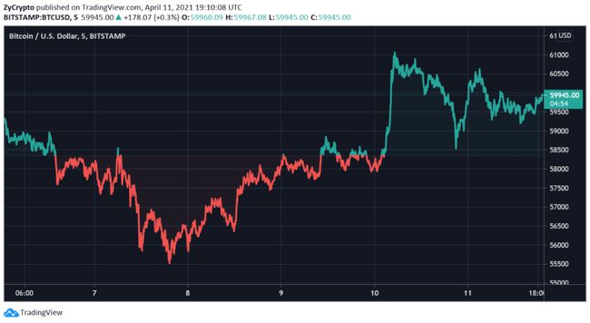 比特币回到60000美元的高位没有持续一天又出现了回调,分析师们对这一顶级数字资产的下一步走势表达了不同的看法,截止发稿时比特币下跌至59847美元。