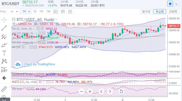 比特币日内行情维持震荡上行,午后价格小幅回后走出反弹,走势突破59000一线压制,价格缓慢向60000关口靠近,多头情绪微微回暖,后续若是再度刷新高位,预计会向这一线试探,笔者楚初建议各位币友提前做好准备。后续突破重点关注企稳情况,目前尽量顺势趋势做多。