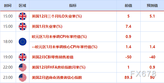 周二(2月23日)欧市盘前,美元指数四连跌,创逾一个月新低,市场预计鲍威尔将保持鸽派立场。英镑兑美元四连涨,维持在近三年高位附近,因美元走软,英国首相约翰逊宣布解除封锁的路线图。现货黄金小幅上涨,美元下跌及通胀预期的上升支撑金价连续上涨。美油两连涨,创一年新高,因上周寒潮侵袭德州导致原油生产关闭后,美国产量缓慢恢复。