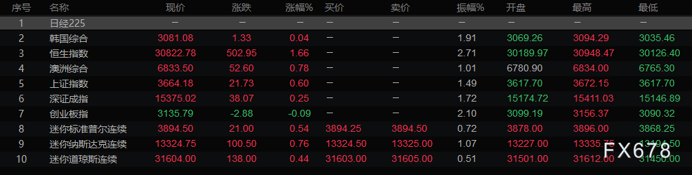 亚洲时段行情回顾