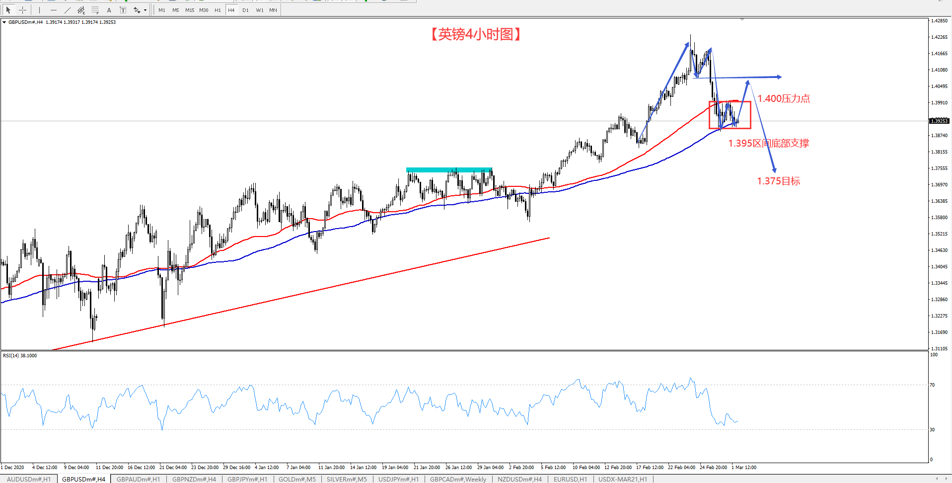 基本面因素,让投资者开始大举押注美元多头,自然而然对英镑将是一段下压的趋势,技术面展现的同样是看空的思路,所以,英镑方向将继续看空无疑。