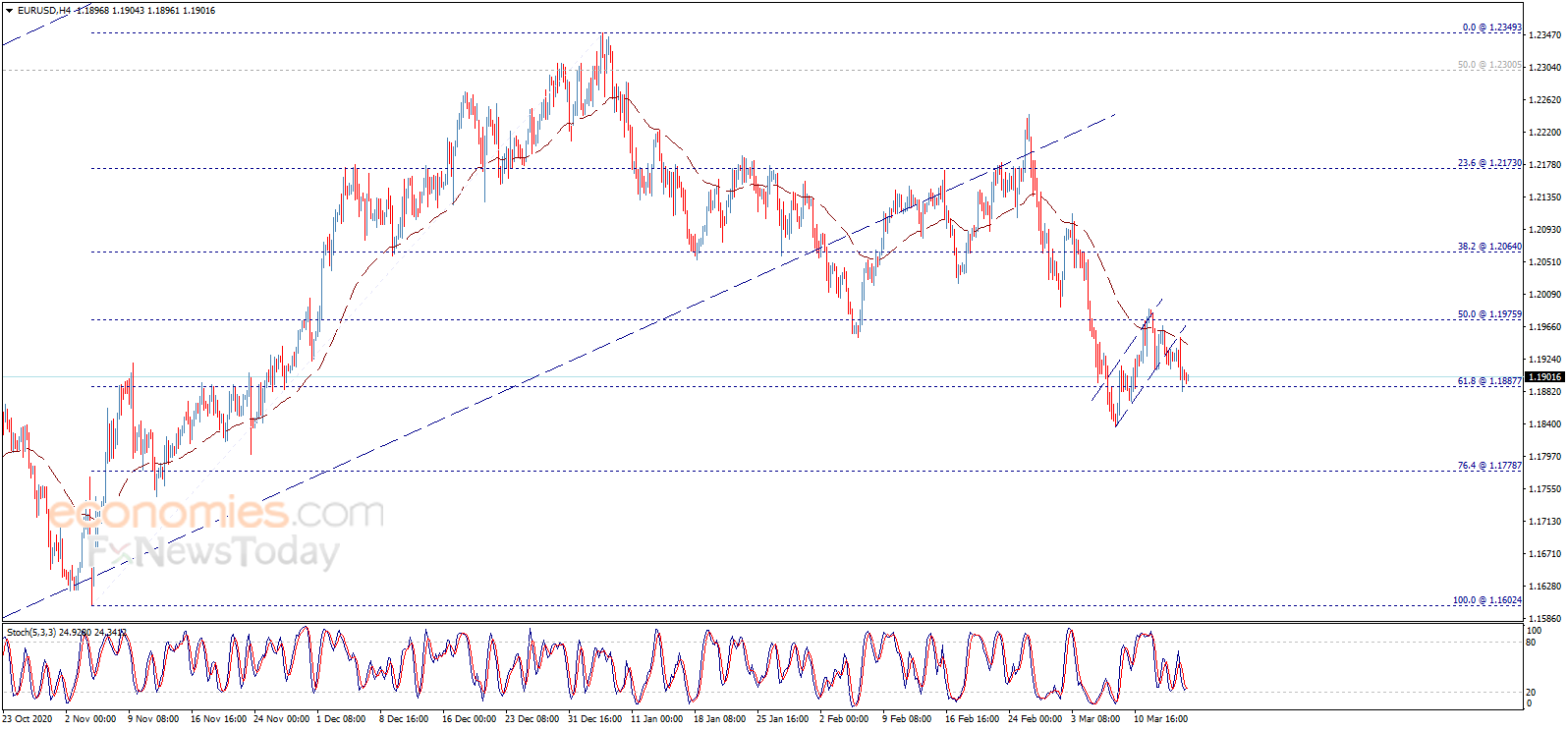 欧元/美元位于1.1888水平附近,从4小时图来看,EMA 50指标继续形成看空压力,从而支持欧元/美元跌破上述水平的可能性,并为该汇价在未来几个交易日继续下跌打开道路,下一目标位于1.1780。