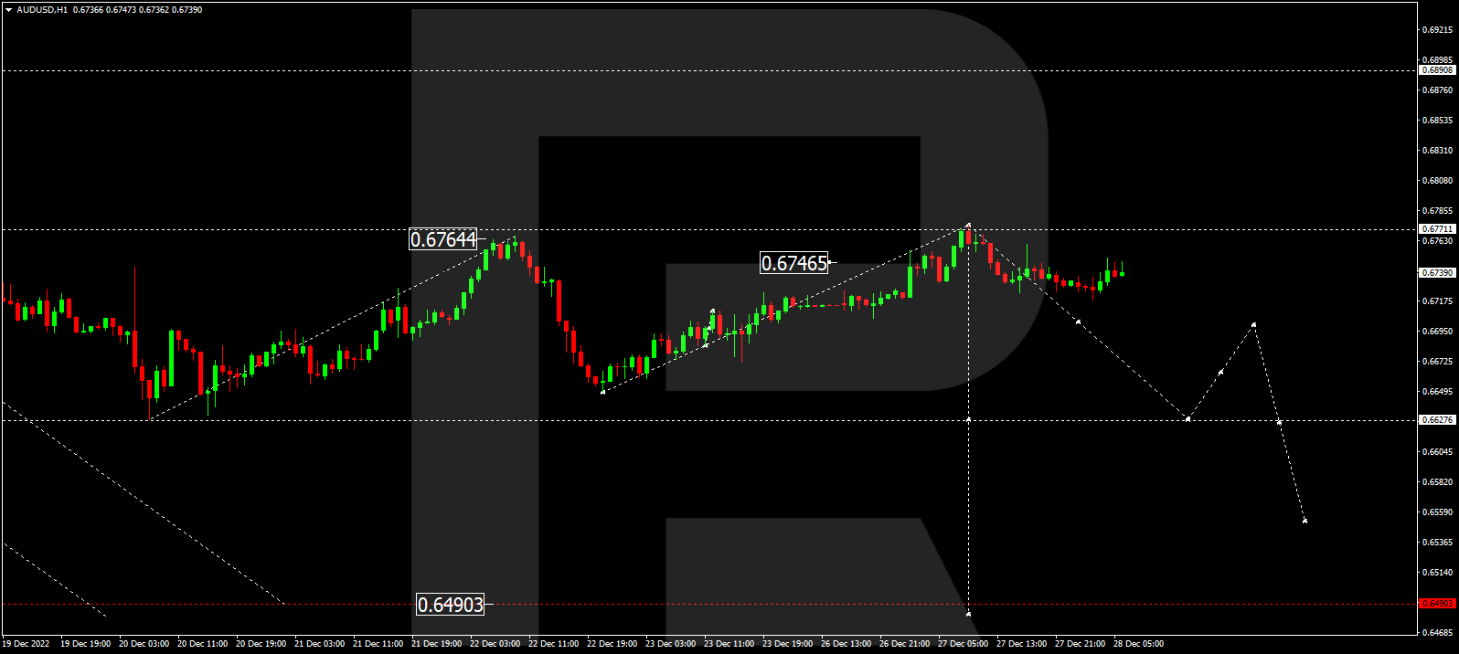 该货币对完成了一波上涨至0.6771。今天一波下跌到0.6700应该会开始,从那里趋势可能会继续到0.6630。