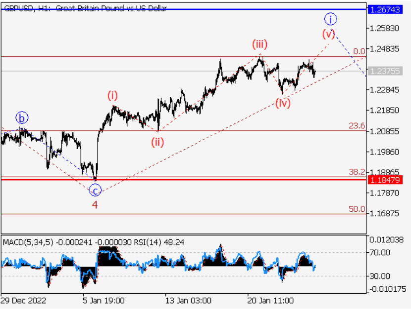货币分析:第五波大V在日线图上大概已经发展结束,第五波V作为它的一部分形成。第一个看涨波(1)在H4图上开始发展,(1)的第3个波形成,在(1)内部的第4个波(4)完成局部修正。显然,(1)的第五波5在H1图上继续发展,第一个较小的i次5波形成了它的一部分。如果这个假设是正确的,该货币对将继续上升到1.2674 - 1.3000的水平。在这种情况下,1.1847是关键水平,因为突破该水平将使该货币对继续下跌至1.1498 - 1.1285。
