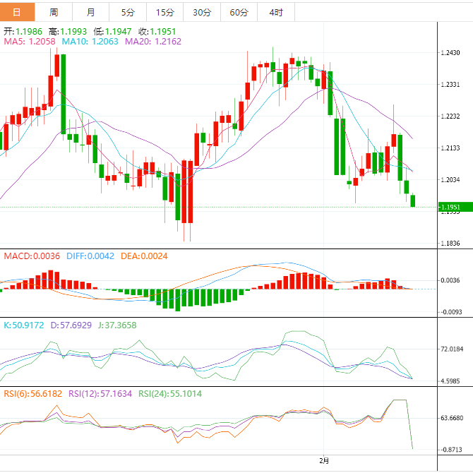 数据发布后,英镑兑美元从日轴心点1.2060附近下滑,并在收复1.2000之前跌向1.1978区域。