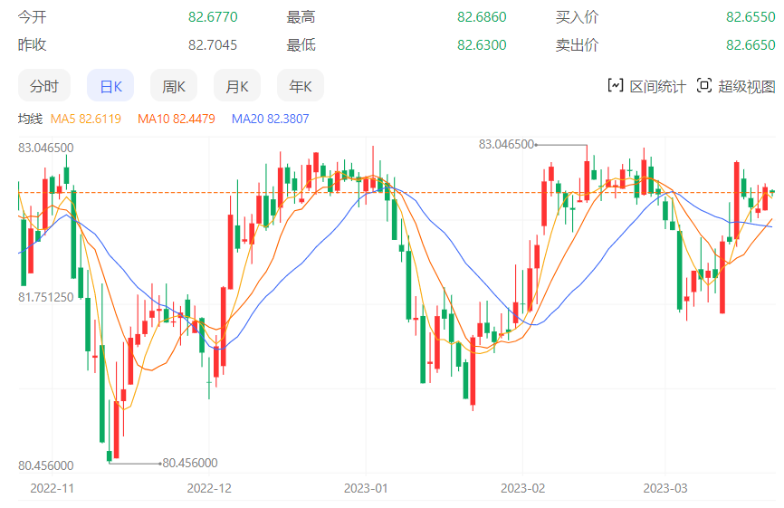 周三欧市盘前,美元/印度卢比在82.60附近来回波动。在周二美元指数观察到横向线索后,汇价表现平平。由于投资者关注美国联邦储备委员会(Fed)宣布的货币政策,预计该指数将继续在窄幅区间内盘整。