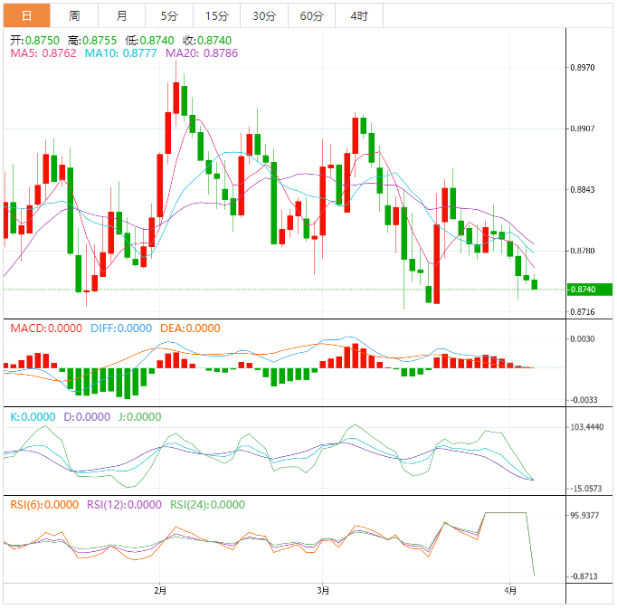 周四盘中,欧元兑英镑未能长期为乐观的德国数据欢呼,截至发稿时,欧元兑英镑从盘中高点逆转至0.8745左右。由于交易员准备迎接欧元区的假期,欧元兑美元已连续第6天下跌,并有可能连续第二周下跌。