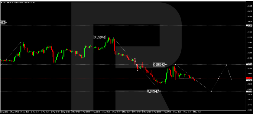 该货币对继续形成一波下跌,至0.8793。在报价达到这个水平之后,一波上涨到0.8893的浪潮可能会开始。如果这一水平也被突破,趋势可能会达到0.9040。