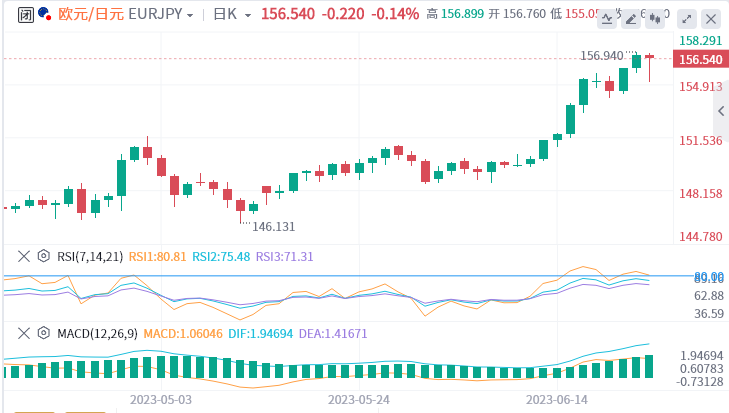 欧元/日元上周延续涨势,最高触及156.92点。那里形成了一个临时的顶部,最初的偏差对合并保持中立。只要保持154.30的小支撑,进一步的反弹将继续有利。高于156.92将恢复更大的上涨趋势,从146.12点至158.67点,预测为139.05点至151.60点,涨幅为100%。下行方面,154.03点的突破将使偏位回到下行,进行更深的回调。