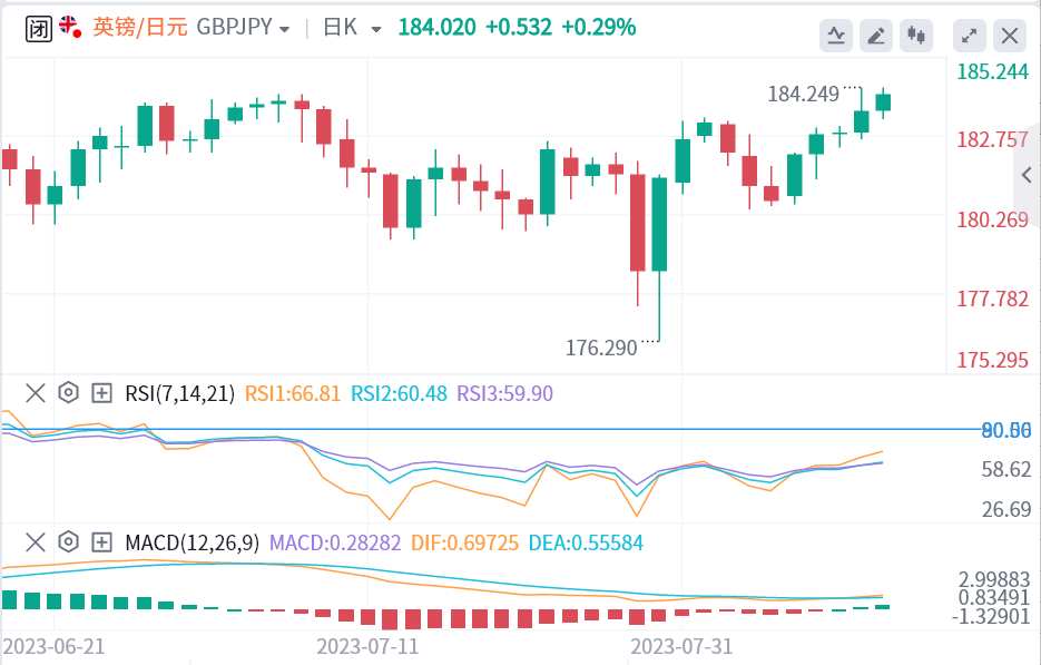 从日线来看,从123.94(2020年低点)开始的上升趋势正在进行中。下一个目标是195.86(2015年高点)。只要176.29支撑位保持不变,即使出现更深的回调,这也仍将是有利的情况。