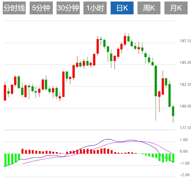 周四亚盘,英镑/日元连续第三天严重承压,并于亚市跌至10月初以来的最低水准。不过,英镑兑日元最新反弹60多个点,目前交投于179.00点附近,全天仍下跌了0.80%。