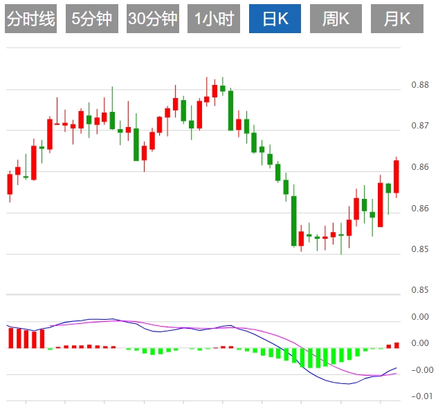 周三欧盘,欧元/英镑交叉盘收复了近期的失地。弱于预期的英国通胀数据对英镑(GBP)施加了一些抛售压力,并为欧元/英镑提供了一些支撑。该交叉盘目前交投于0.8645附近,当日上涨0.21%。