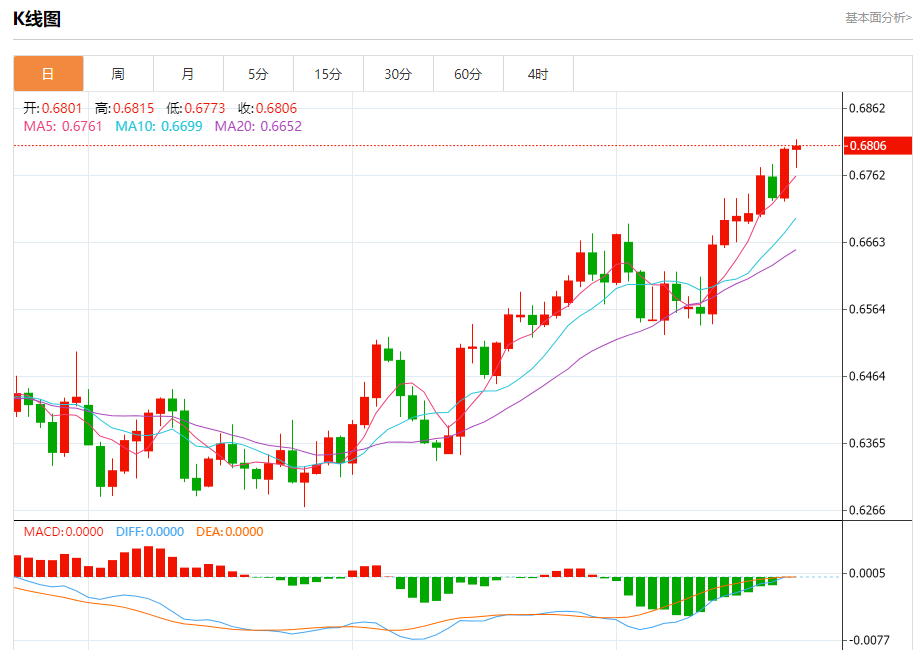 今日周五,澳元兑美元报0.6805,涨幅0.04%;美元兑加元报1.3279,跌幅0.03%;美元兑瑞郎报0.8548,跌幅0.18%。